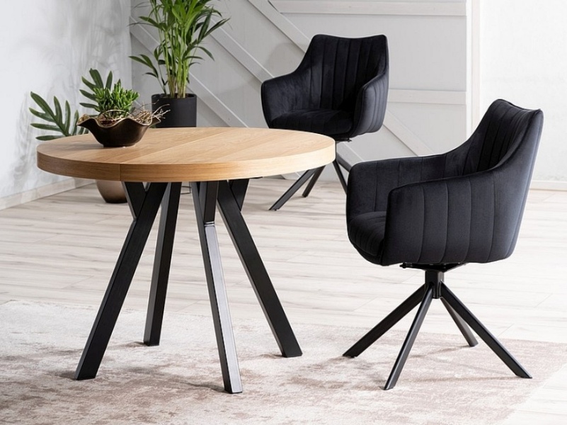 Scaun tapitat AZALIA VELVET rotativ, catifea black 61x58xH86cm, picioare negre