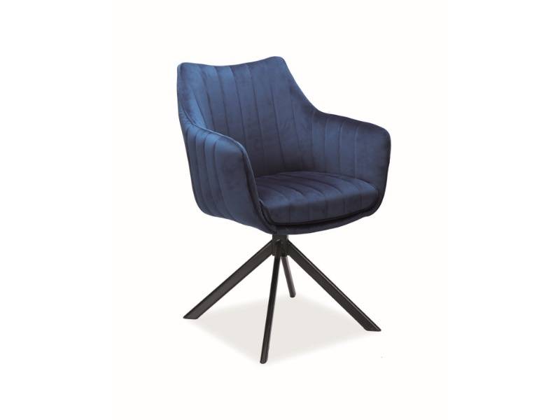 Scaun tapitat AZALIA VELVET rotativ, catifea blue 61x58xH86cm, picioare negre