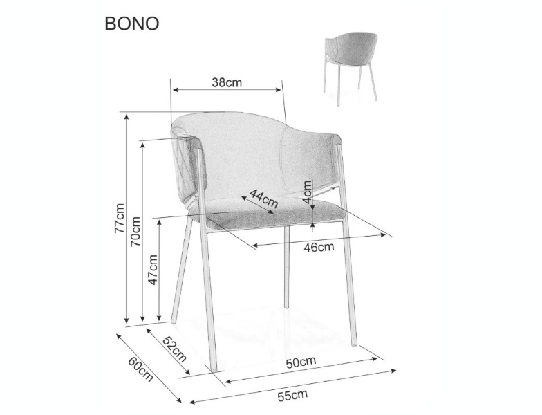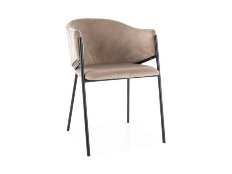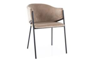Scaun tapitat BONO VELVET design rotunjit minimalist, catifea beige 55x60xH77cm, picioare negre