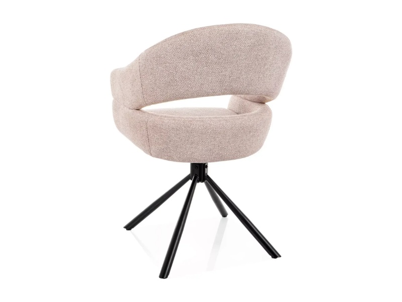 Scaun tapitat BORGO LEO rotativ, material textil light cream 58x60xH87cm, picioare negre