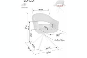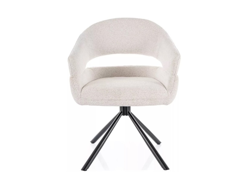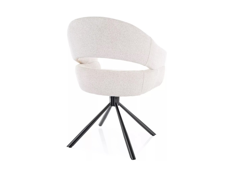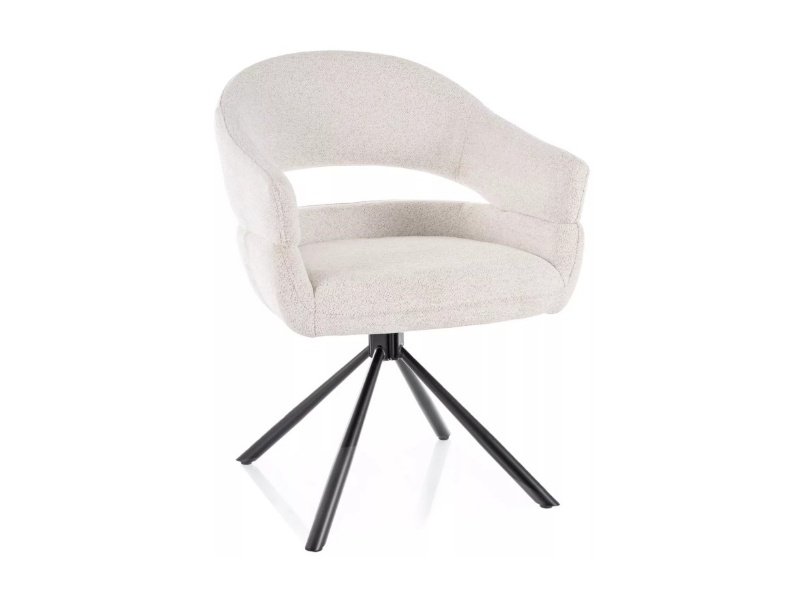 Scaun tapitat BORGO RAVEN rotativ, material textil cream 58x60xH87cm, picioare negre