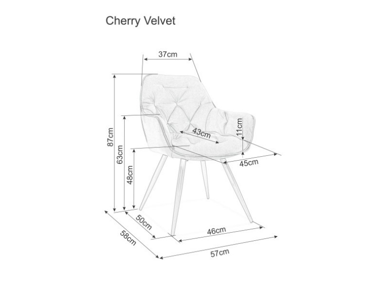Scaunul CHERRY VELVET Black, tapitat in catifea Bluvel 19 de culoare neagra, imbina eleganta cu confortul. Picioarele din metal vopsit in negru completeaza designul modern, fiind ideal pentru un interior sofisticat si contemporan!