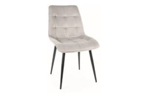 Scaun CHIC VELVET din catifea gri deschis Bluvel 03, cu picioare metalice negre. Design modern si elegant, ideal pentru interioare contemporane. Confort si stil intr-un produs de exceptie!