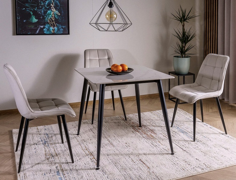Scaun tapitat CHIC VELVET catifea light grey 50x58xH88cm, picioare negre