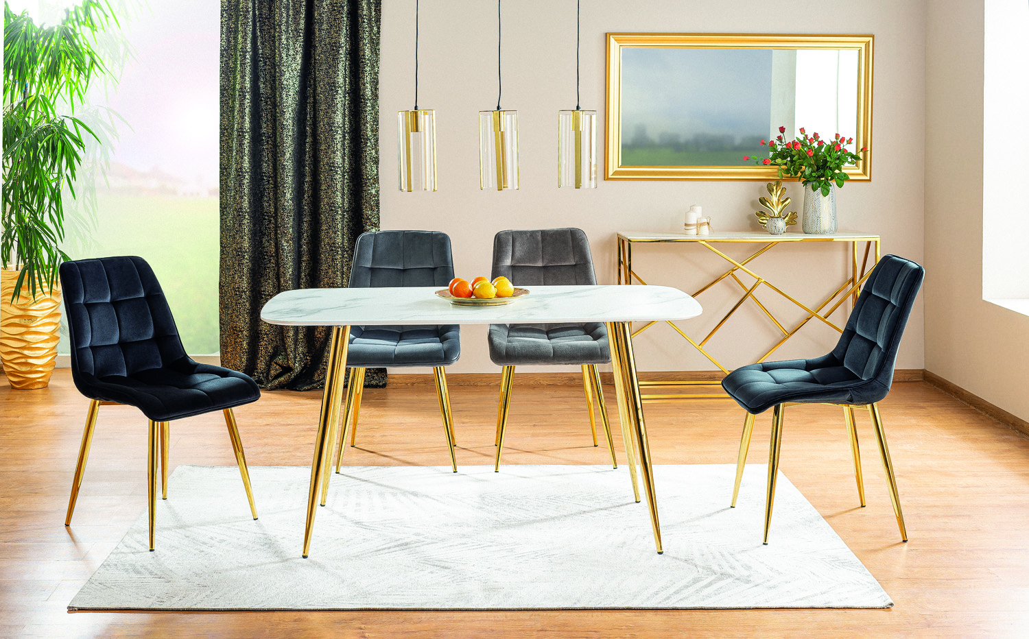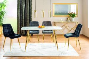 • Picioarele scaunului sunt realizate din metal vopsit in culoare auriu