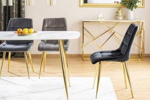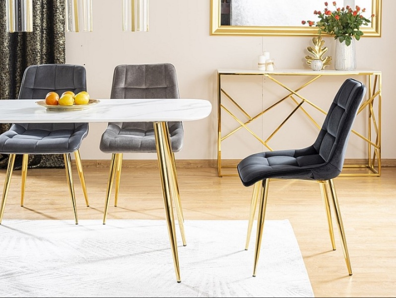 Scaun tapitat CHIC VELVET GOLD catifea grey 50x58xH88cm, picioare aurii