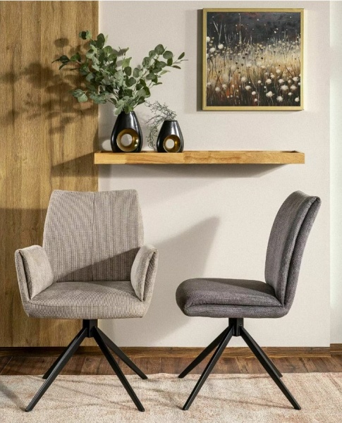 Scaun tapitat COCO II VARDO rotativ, material textil beige 60x64xH87cm, picioare negre
