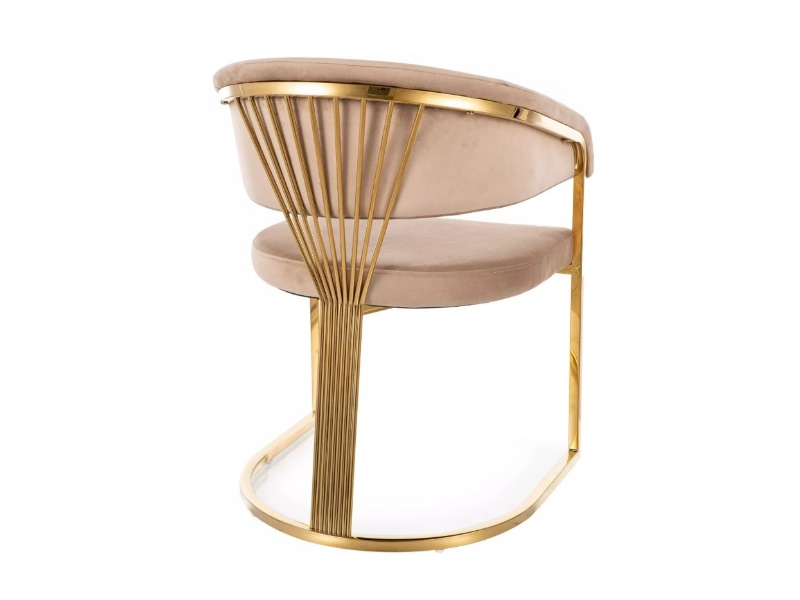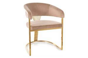 Scaun tapitat CROWN VELVET design rotunjit luxury, catifea beige 57x64xH77cm, picioare aurii