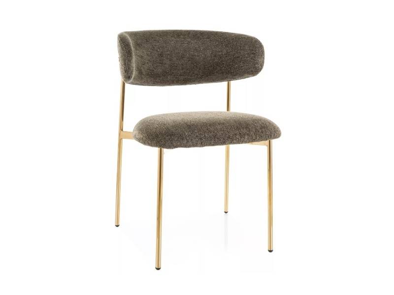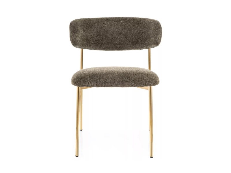 Scaun tapitat ELTON RAVEN minimalist, material textil olive 56x58xH80cm, picioare aurii