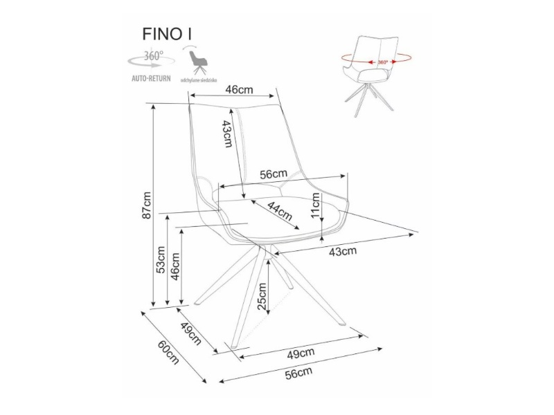 Scaun tapitat FINO I rotativ, functie de inclinare a spatarului, material textil grey 56x60xH87cm, picioare negre