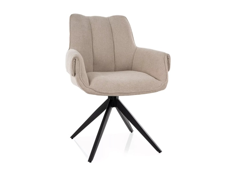 Scaun tapitat GIO rotativ, material textil light beige 62x62xH86cm, picioare negre