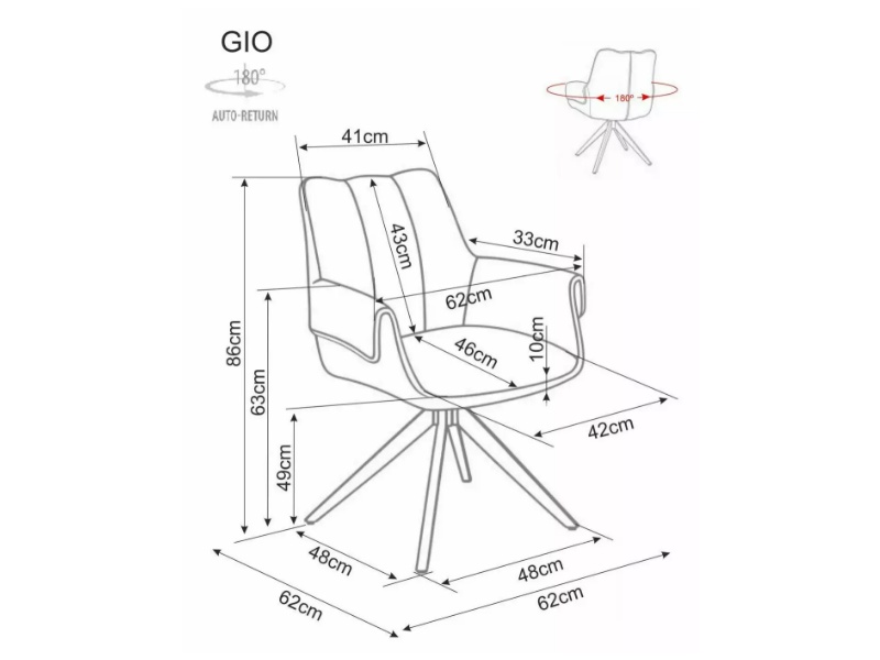 • Scaunul se poate roti pana la 180 de grade cu functia de revenire la original.