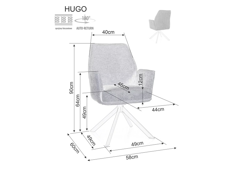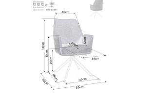 Scaun tapitat HUGO BREGO rotativ, material textil grey 58x60xH90cm, picioare negre