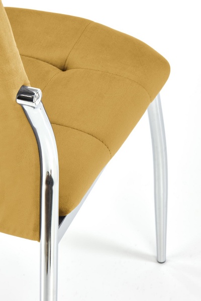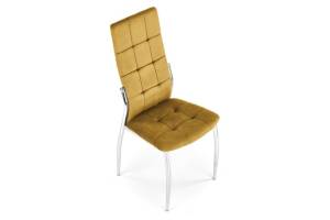 Scaun tapitat K416 cu spatar inalt, catifea curry 43x54xH101cm, cadru si picioare crom