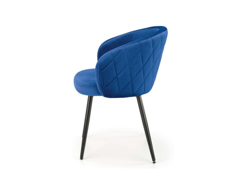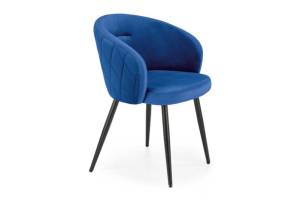 Scaun tapitat K430 design rotunjit, catifea blue 61x54xH77cm, picioare negre