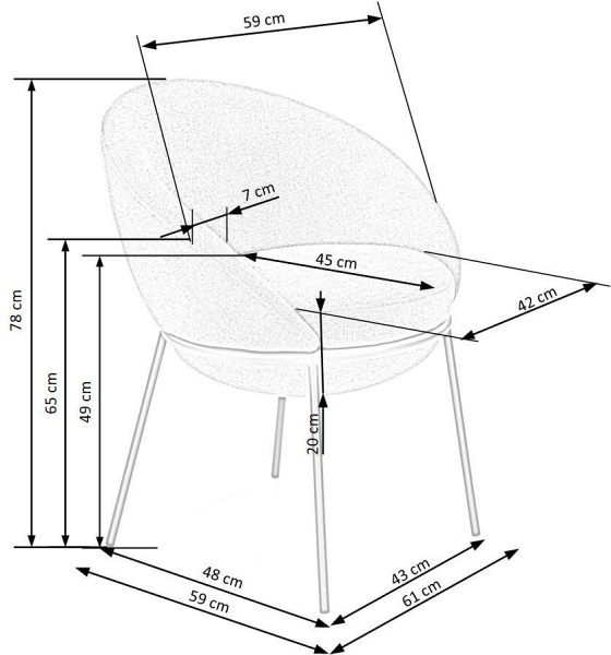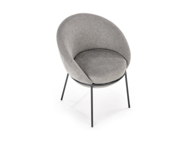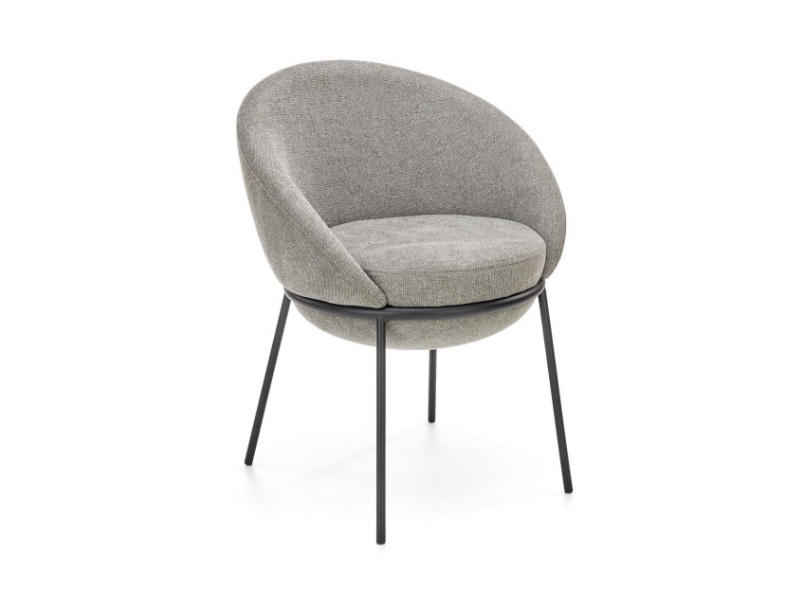 Scaun tapitat K482 cu design rotunjit, material textil grey 61x59xH78cm, cadru si picioare negre