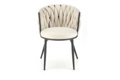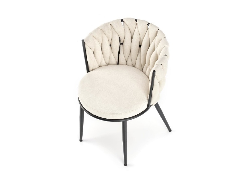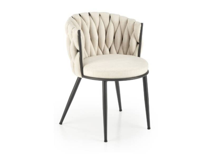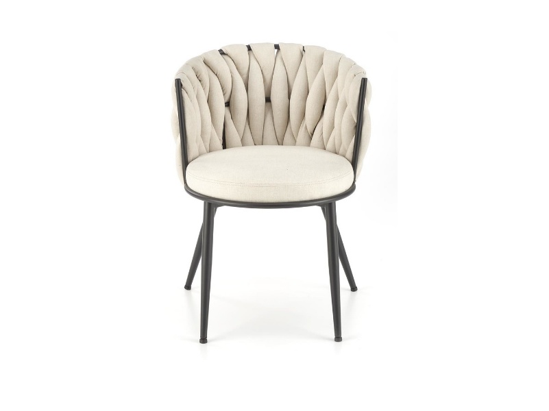 Scaun tapitat K516 elegant, material textil beige 40x48xH79cm, cadru si picioare negre