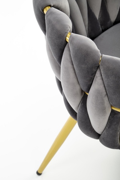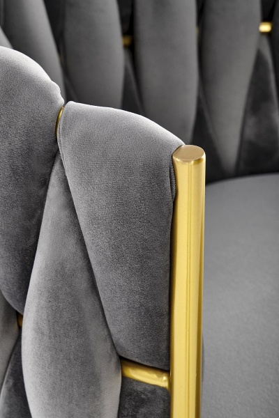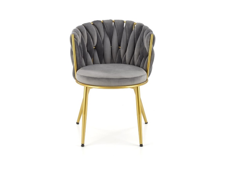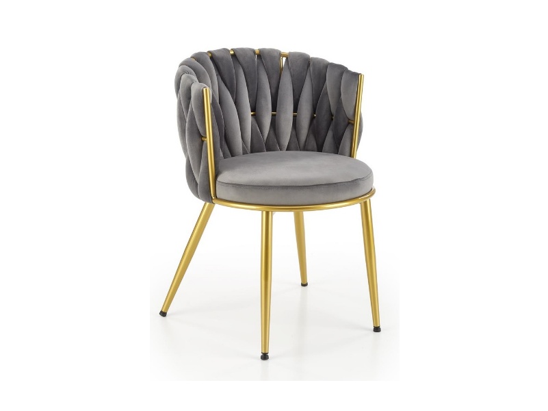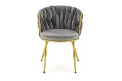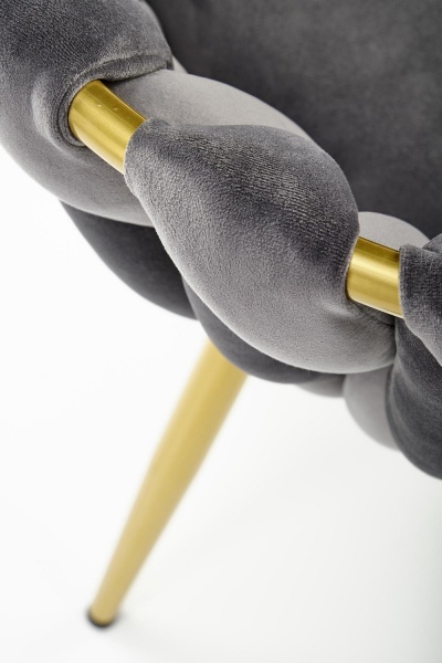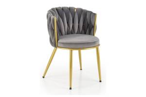 Scaun tapitat K517 elegant, luxury, catifea grey 40x48xH79cm, cadru si picioare aurii