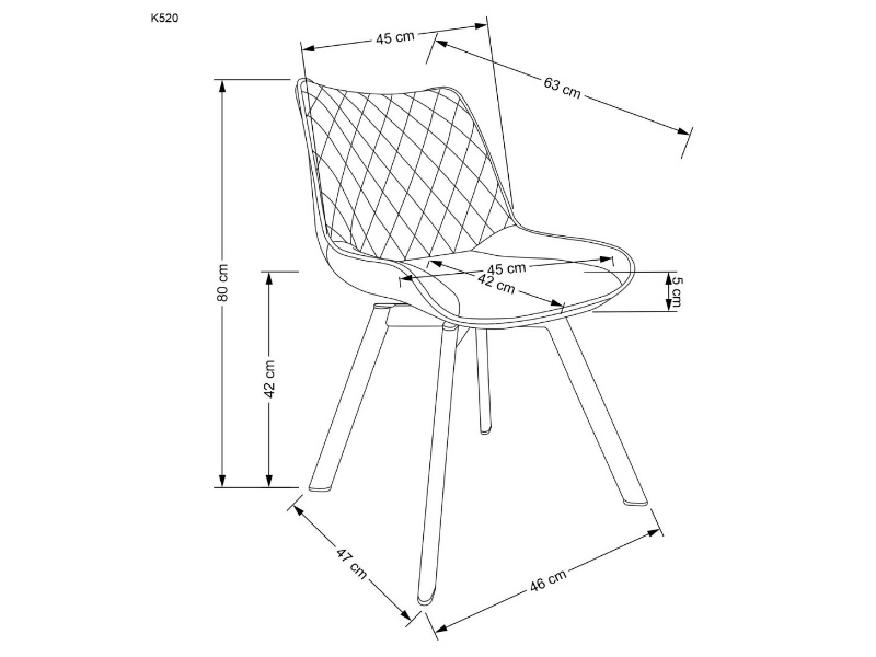 • Picioarele scaunului sunt fabricate din otel vopsit cu pulbere nuanta negru