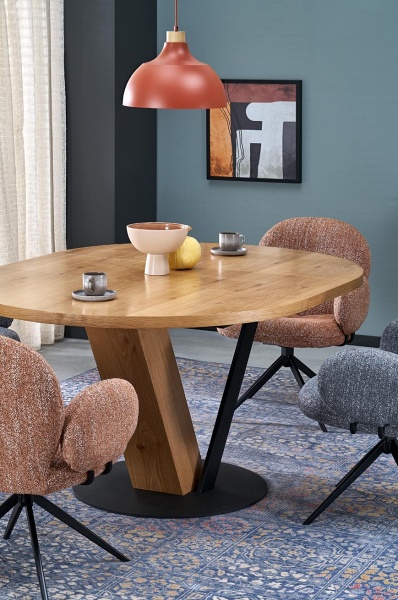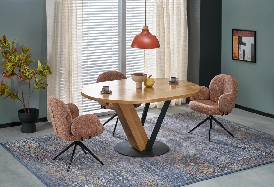 Scaun tapitat K568 rotativ, material textil cinnamon 47x47xH83cm, picioare negre