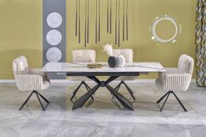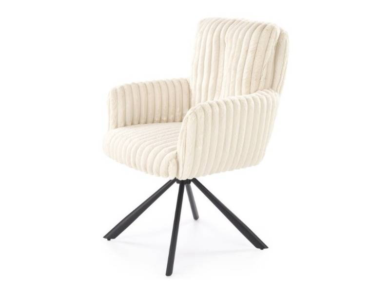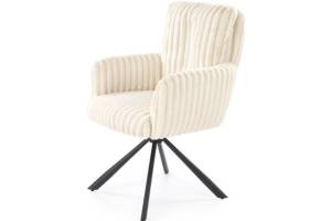 Scaun tapitat K572 rotativ, confortabil material plusat-raiat beige 62x68xH93cm, picioare negre