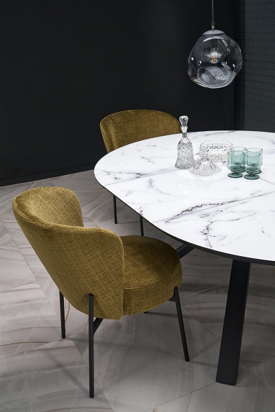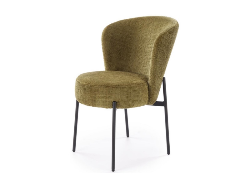 Scaun tapitat K590 material textil-plusat olive 55x66xH80cm, picioare negre