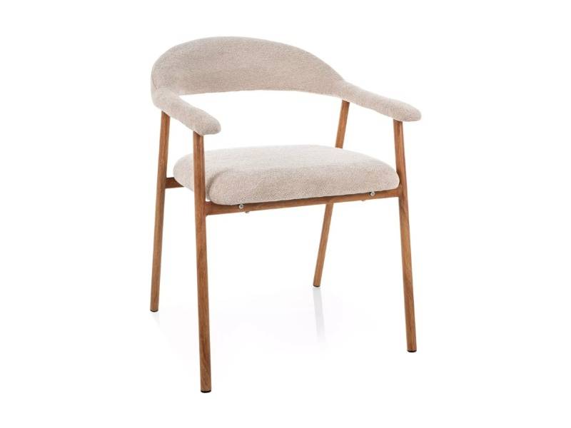 Scaun tapitat LAGOS D RAVEN material textil beige 57x61xH76cm, picioare nuanta lemnului stejar