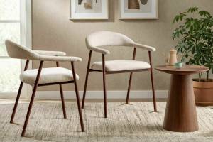 Scaun tapitat LAGOS D RAVEN material textil cream 57x61xH76cm, picioare nuanta lemnului nuc