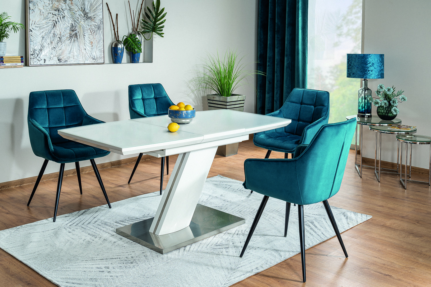 Scaun tapitat PRAGA FIORD confortabil, material textil green 49x60xH84cm, picioare negre
