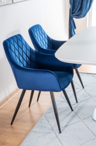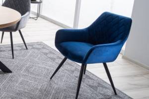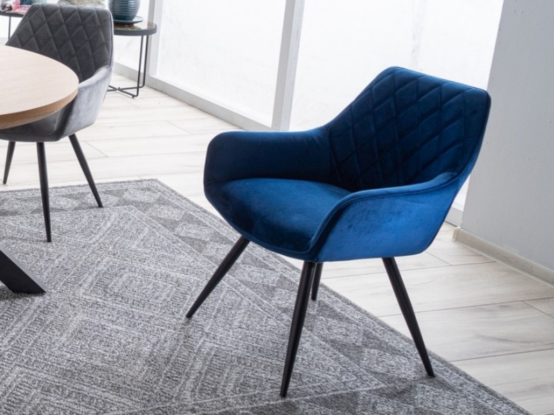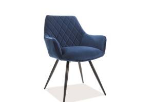 Scaun tapitat LINEA VELVET catifea blue 59x59xH82cm, picioare negre