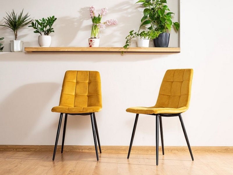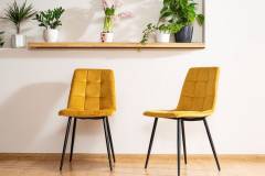 Scaun mustar MILA VELVET cu tapiterie din catifea Bluvel 68 (mustar) si picioare din metal vopsit negru. Design modern si vibrant, perfect pentru living, dining sau birou. Adauga un plus de culoare si rafinament spatiului tau!