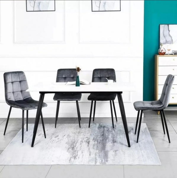 Scaun tapitat MILA VELVET catifea grey 45x53xH86cm, picioare negre