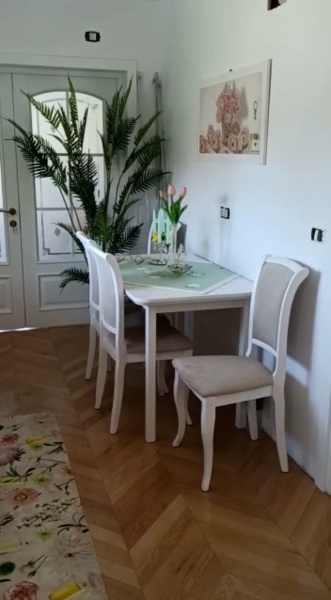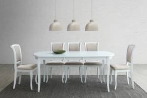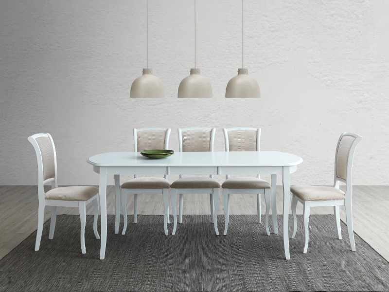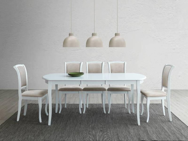 Scaun tapitat MN-SC design clasic, material textil cream 45x42xH96cm, cadru si picioare din lemn albe