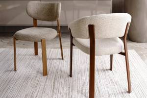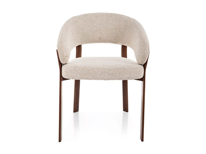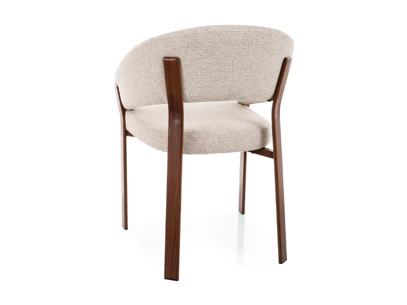 Scaun tapitat NAGOJA D material textil beige 56x60xH80cm, picioare si cadru nuanta lemnului nuc