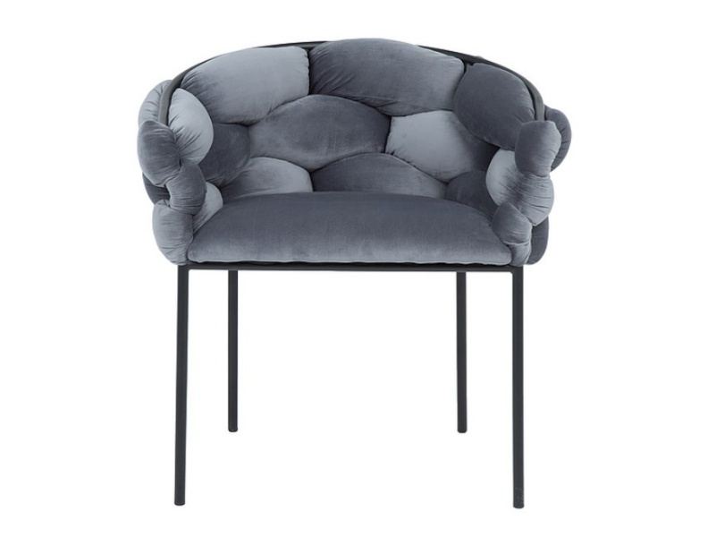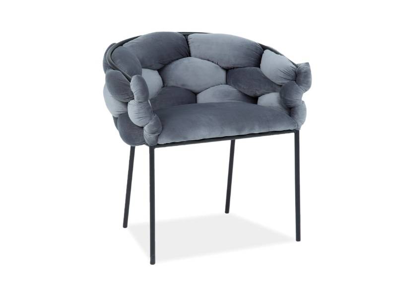 Scaun tapitat NORTE VELVET elegant, catifea grey 76x62xH75cm, cadru si picioare negre