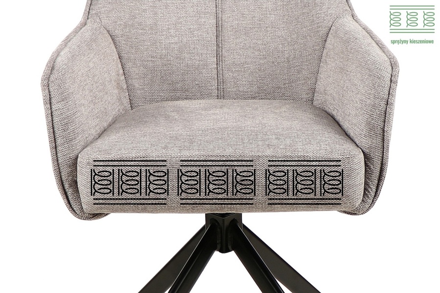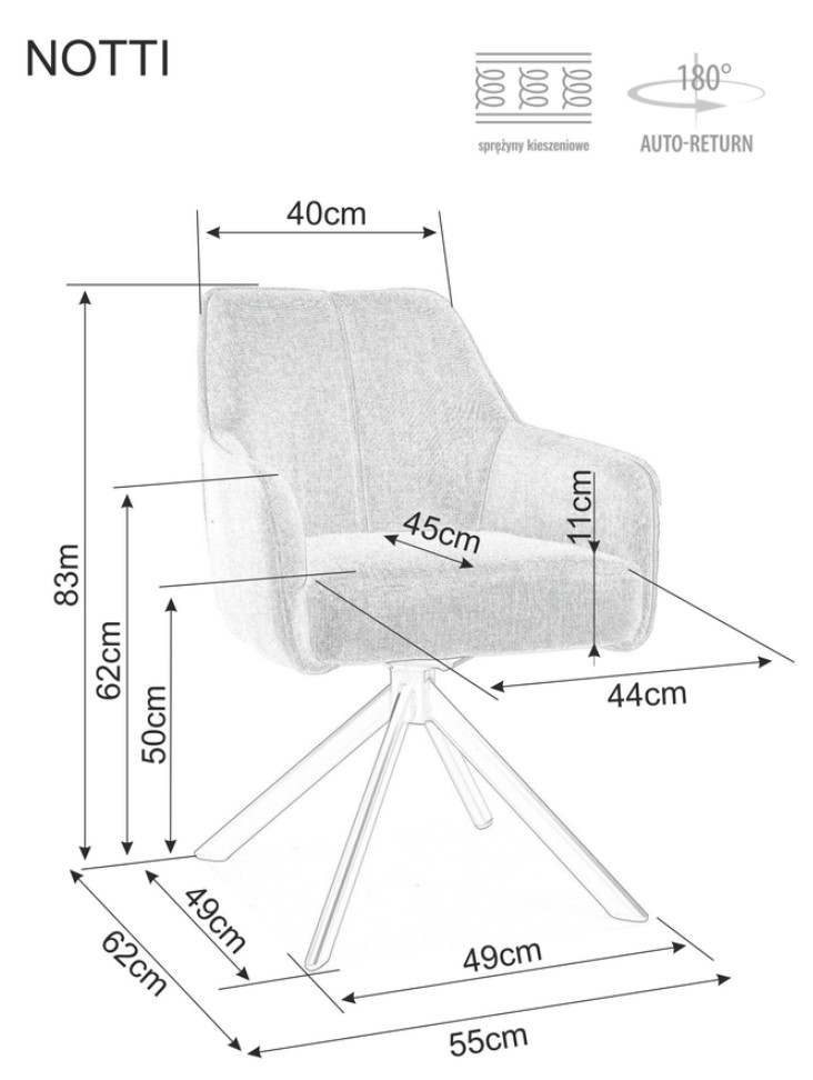 Scaun tapitat NOTTI BREGO rotativ, material textil beige 55x62xH83cm, picioare negre