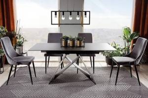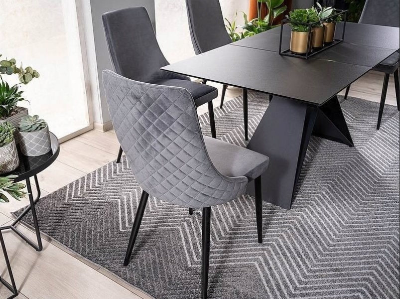 Scaun tapitat LINEA VELVET catifea grey 59x59xH82cm, picioare negre
