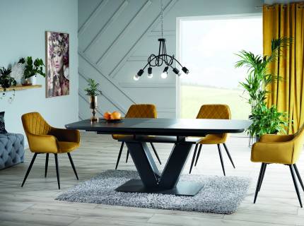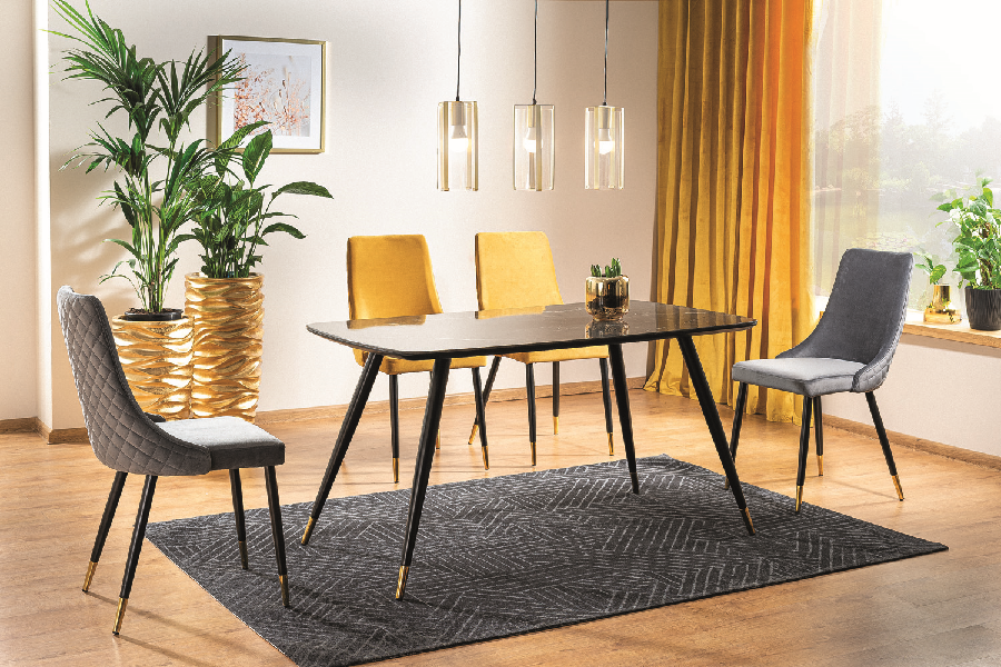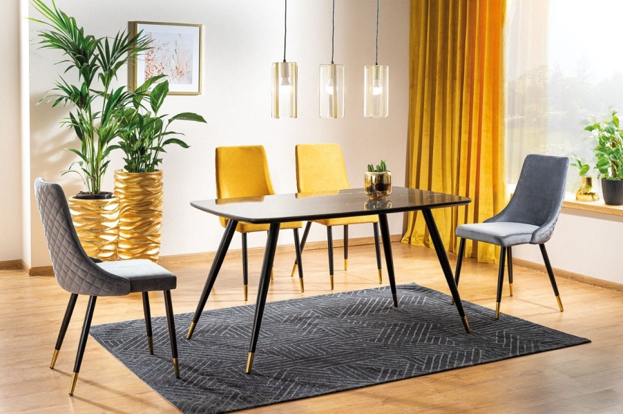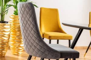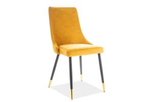 Scaun tapitat PIANO VELVET catifea curry 47x59xH93cm, picioare negre cu auriu