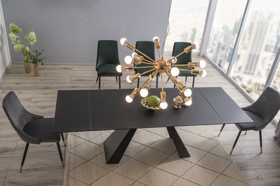 Scaun tapitat PIANO VELVET catifea green 47x59xH93cm, picioare negre cu auriu