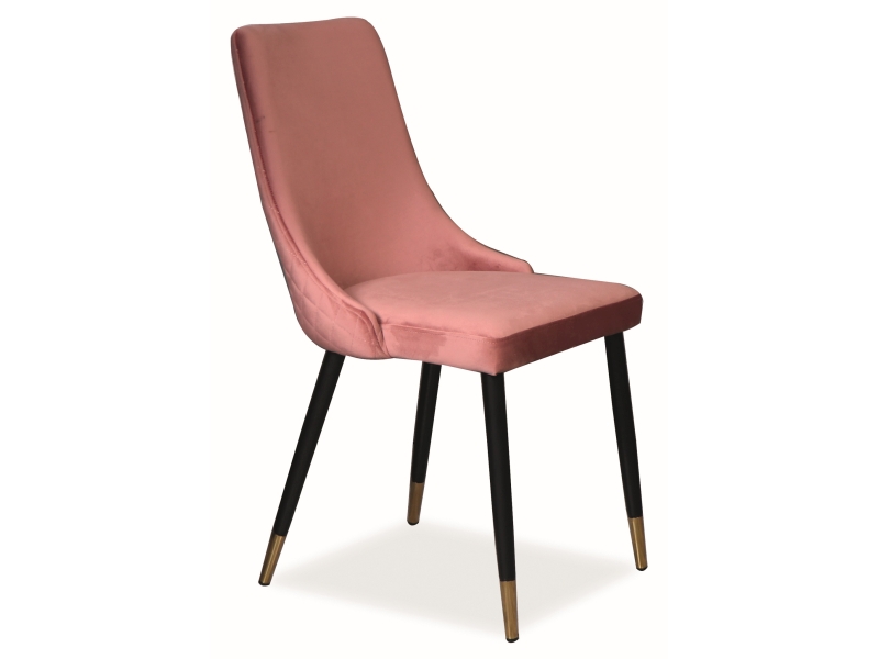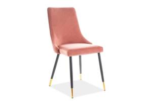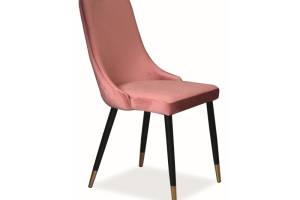 Scaun tapitat PIANO VELVET catifea somon pink 47x59xH93cm, picioare negre cu auriu