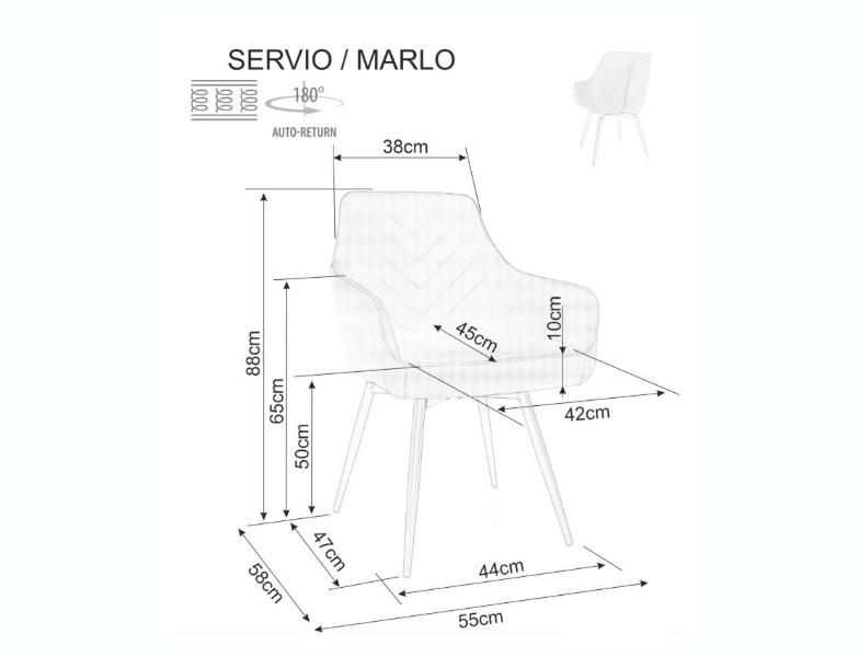 Scaun tapitat SERVIO BREGO rotativ, material textil cappuccino 55x58xH88cm, picioare negre