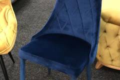 • Picioarele scaunului sunt tapitate cu catifea de culoare albastra.