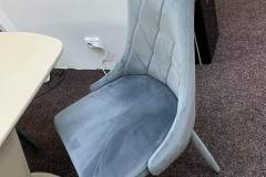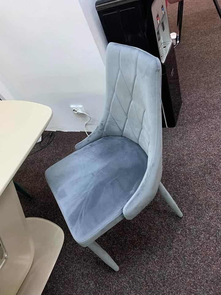 • Picioarele scaunului sunt tapitate cu catifea de culoarea gri.