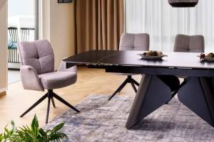 Scaun tapitat WING rotativ, material textil light grey 60x65xH90cm, picioare negre