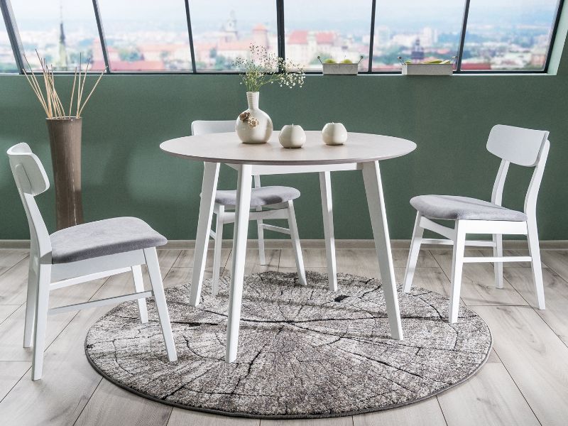 Set 4 scaune tapitate CD-62 design clasic, material textil grey 47x42xH76cm cadru si picioare din lemn albe