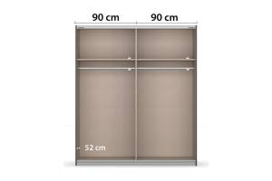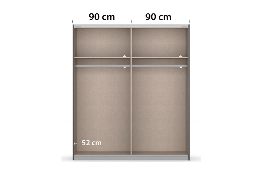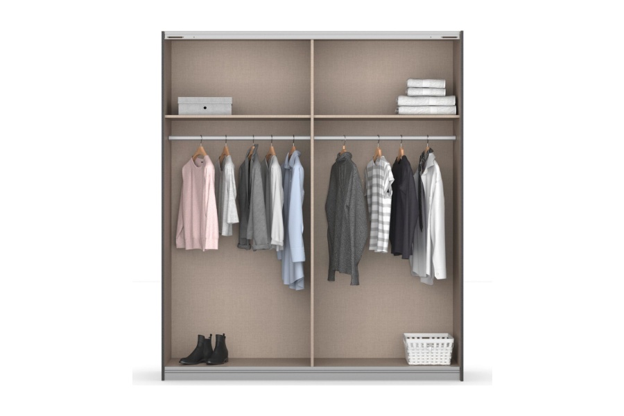 - Compartimentare: Dulapul are starndard o polita si o bara pentru umerase pentru fiecare compartiment in parte (2 polite + 2 bari)