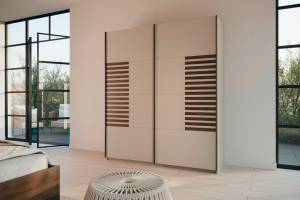 Dulap cu usi glisante BAREA 181x210x62cm champagne + stejar Atlantic dark, maner gri metalic