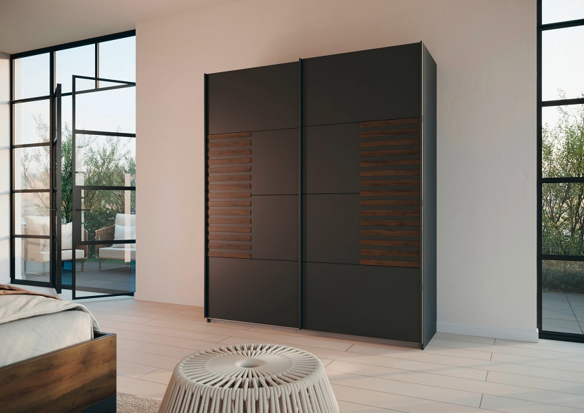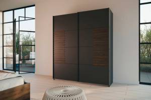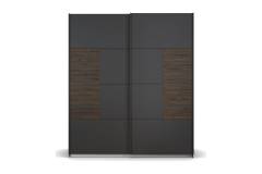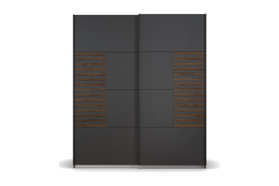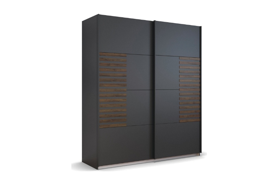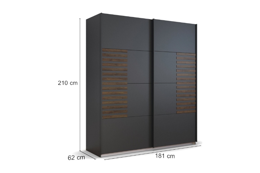 Dulap cu usi glisante BAREA 181x210x62cm gri metalic + stejar Atlantic dark, maner gri metalic
