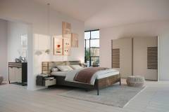 Dulap cu usi glisante BAREA 226x210x62cm champagne + stejar Atlantic dark, maner gri metalic