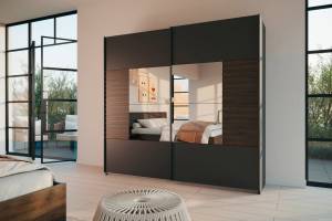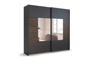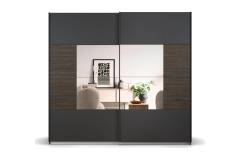 Dulap cu usi glisante BAREA 226x210x62cm gri metalic + stejar Atlantic dark - oglinda, maner gri metalic